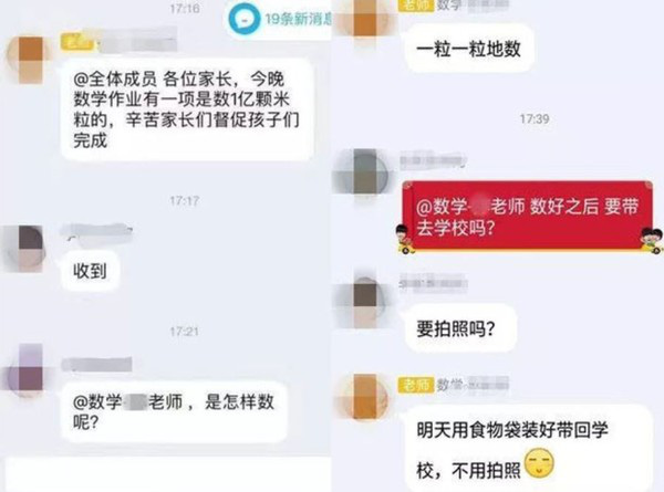 Trang ETToday đưa tin vào ngày 2/12, một đay toán ở một trường tiểu học tại thành phố Phật Sơn, tỉnh Quảng Đông, Trung Quốc đã giao bài tập về nhà cho các học sinh lớp 4 của mình: Đếm 100 triệu hạt gạo và đóng gói mang lên trường. tía cho biết, ý định ban đầu là vì muốn phụ huynh và học sinh đếm cùng nhau.